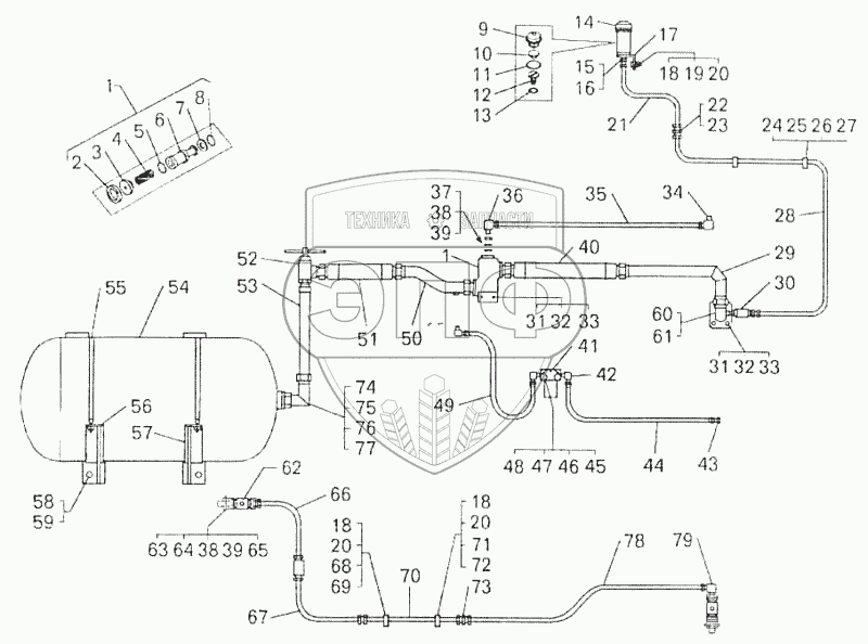 Каталог запасных частей к технике: БелАЗ-7547. Система пневмостартерного пуска двигателя