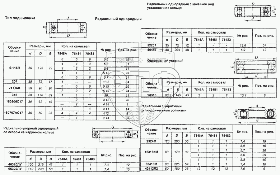 Каталог запасных частей к технике: БелАЗ-7548А. Подшипники