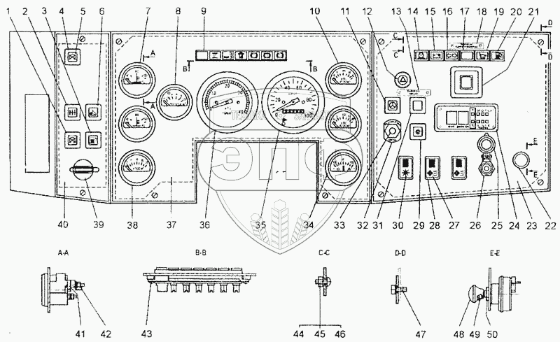 Каталог запасных частей к технике: БелАЗ-7555A. Панель приборов БелАЗ-7555А