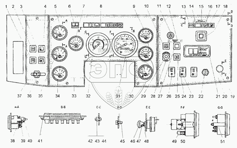 Каталог запасных частей к технике: БелАЗ-7555A. Панель приборов БелАЗ-7555В