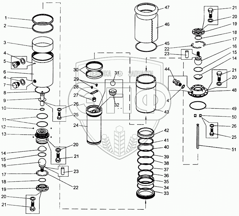 Каталог запасных частей к технике: БелАЗ-7555A. Цилиндр задней подвески