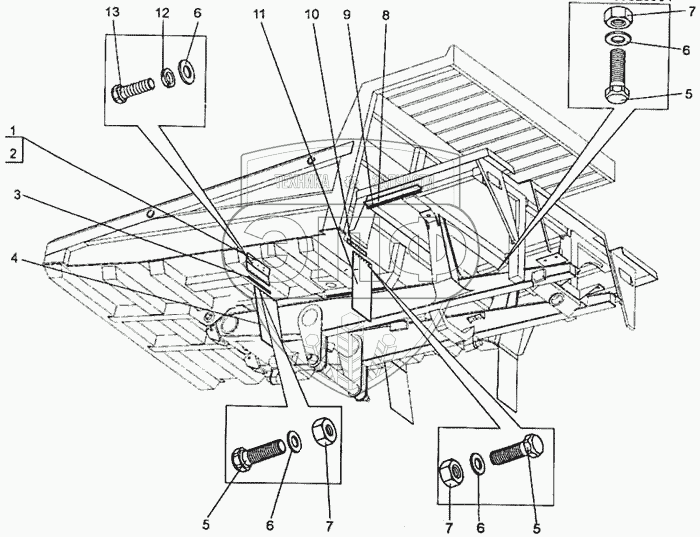 Каталог запасных частей к технике: БелАЗ-7555A. Установка брызговиков