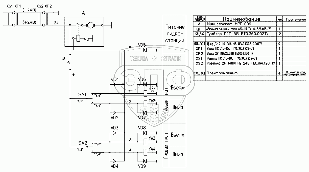 Каталог запасных частей к технике: Брянский Арсенал Полуприцеп 93384А-10. Схема электрическая принципиальная