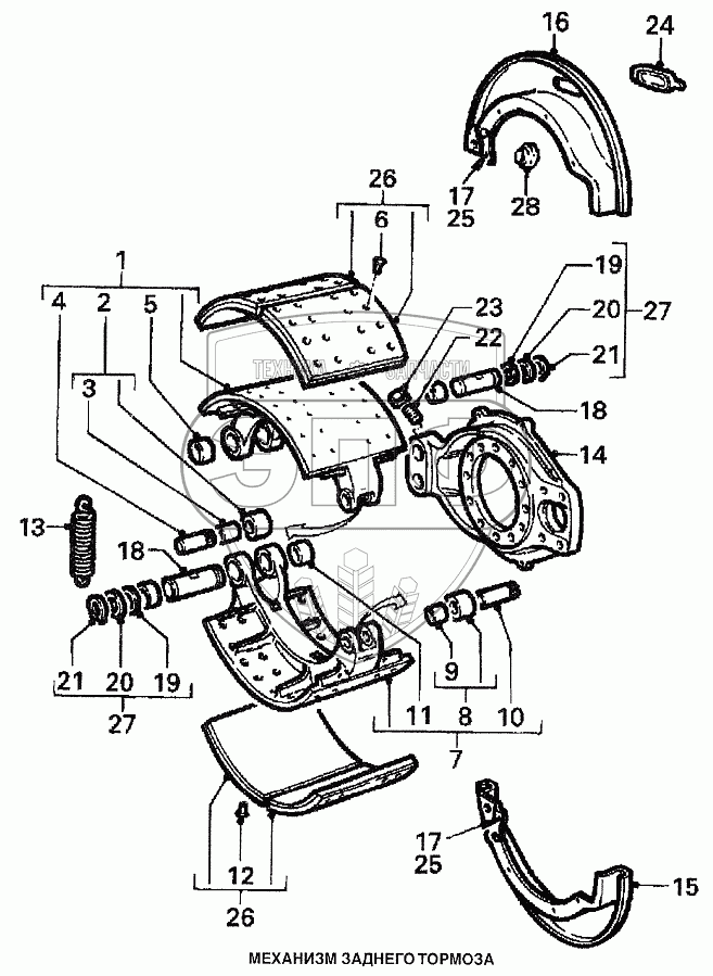 Каталог запасных частей к технике: DAF 95XF. Механизм заднего тормоза