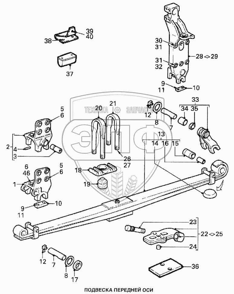 Каталог запасных частей к технике: DAF 95XF. Подвеска передней оси