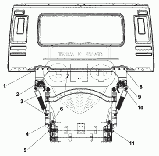 Каталог запасных частей к технике: DongFeng DFL-3251A. Задняя подвеска кабины