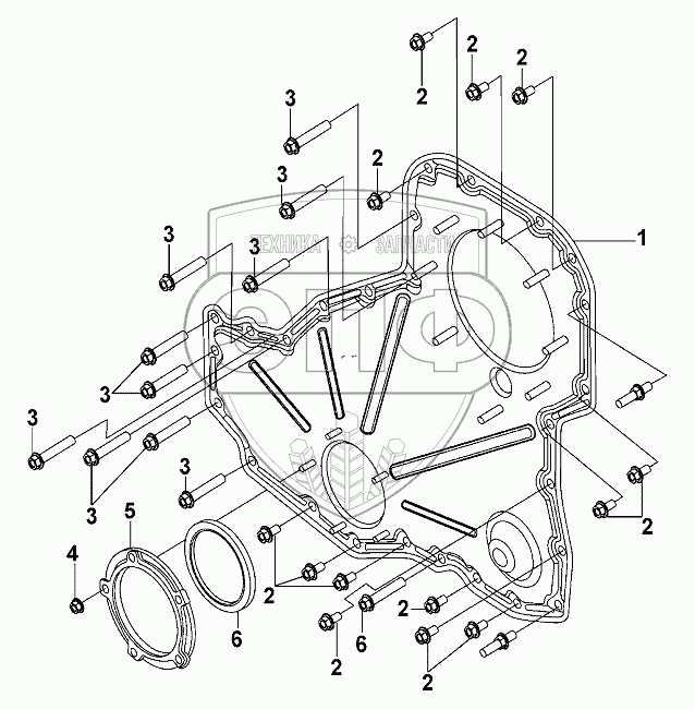 Каталог запасных частей к технике: DongFeng DFL-3251AW1. Gear Chamber Cover Group
