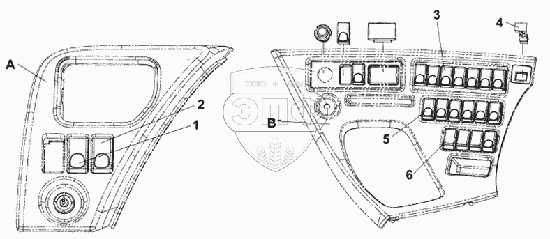 Каталог запасных частей к технике: DongFeng DFL-4181A. Группа выключателей на щитке