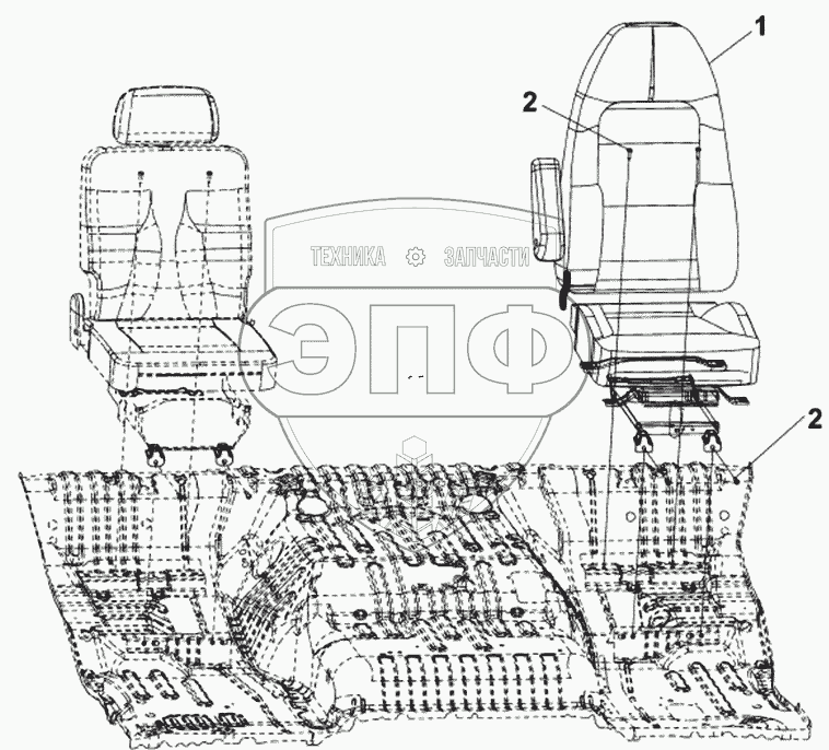 Каталог запасных частей к технике: DongFeng DFL-4181A. Компоновка сидений в кабине