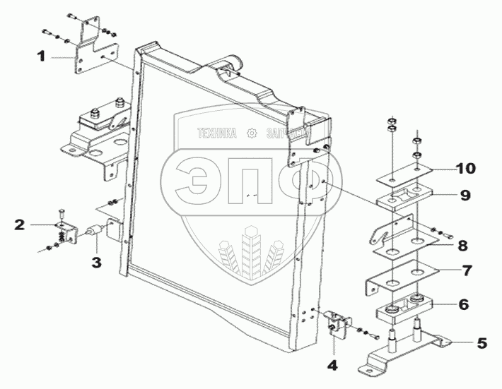 Каталог запасных частей к технике: DongFeng DFL-4181A. Крепеж радиатора