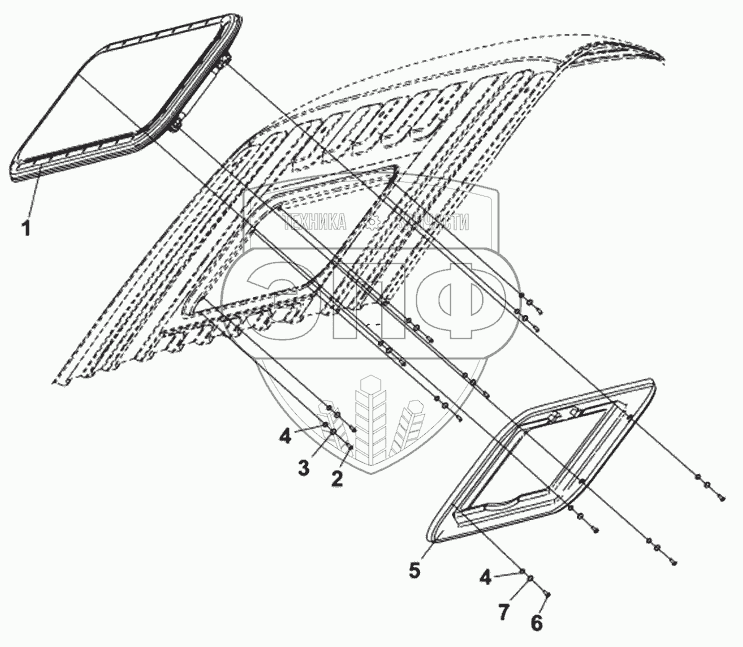 Каталог запасных частей к технике: DongFeng DFL-4181A. Люк крыши в сборе