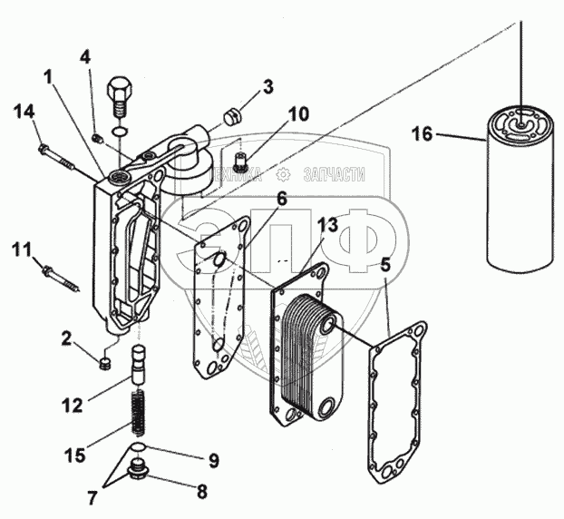 Каталог запасных частей к технике: DongFeng DFL-4181A. Маслоохладитель и масляный фильтр