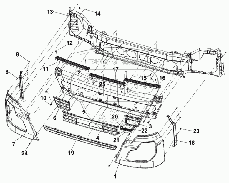 Каталог запасных частей к технике: DongFeng DFL-4181A. Передний бампер
