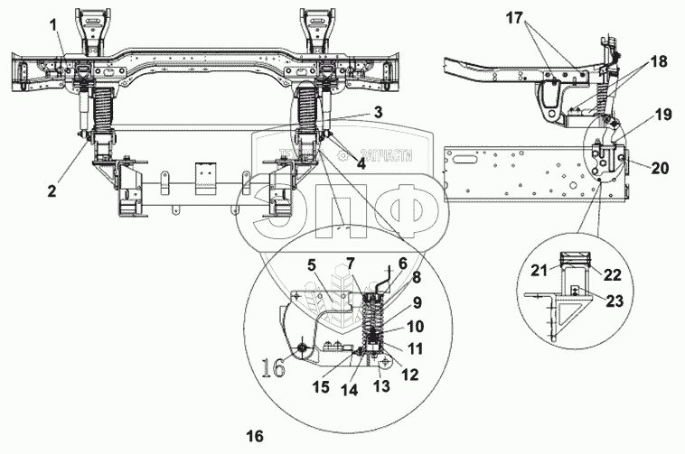 Каталог запасных частей к технике: DongFeng DFL-4181A. Передняя подвеска кабины