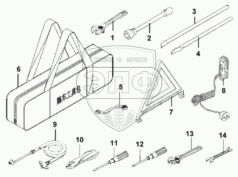 Каталог запасных частей к технике: DongFeng DFL-4181A. Сумка инструментов