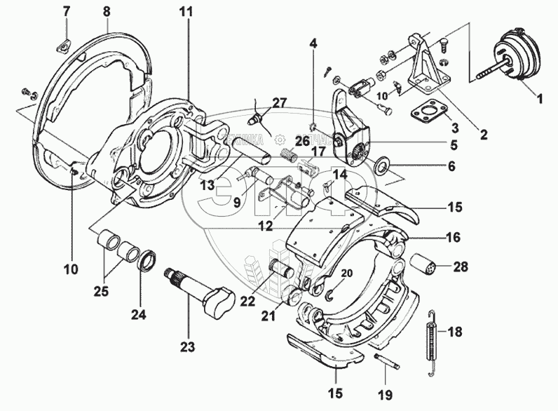 Каталог запасных частей к технике: DongFeng DFL-4181A. Тормозной механизм передний правый