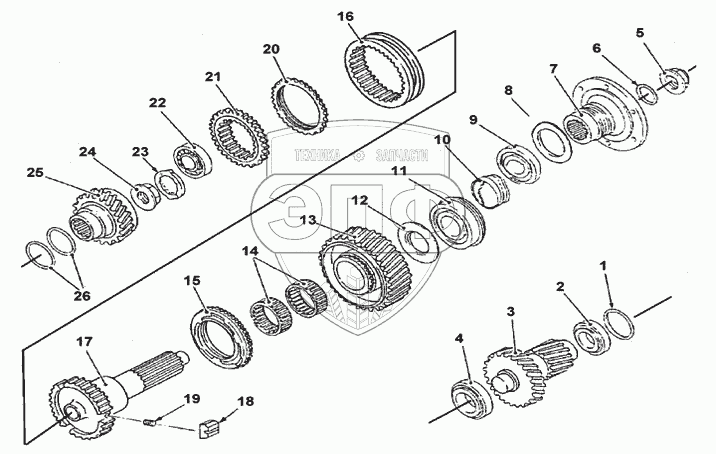 Каталог запасных частей к технике: DongFeng DFL-4181A. Вспомогательный вал