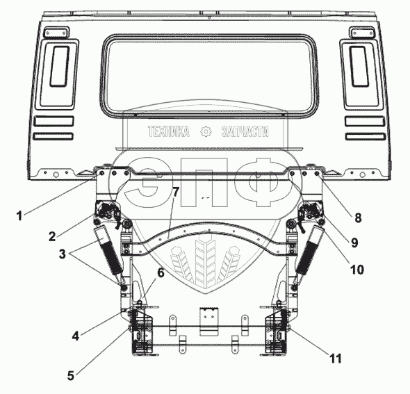 Каталог запасных частей к технике: DongFeng DFL-4181A. Задняя подвеска кабины