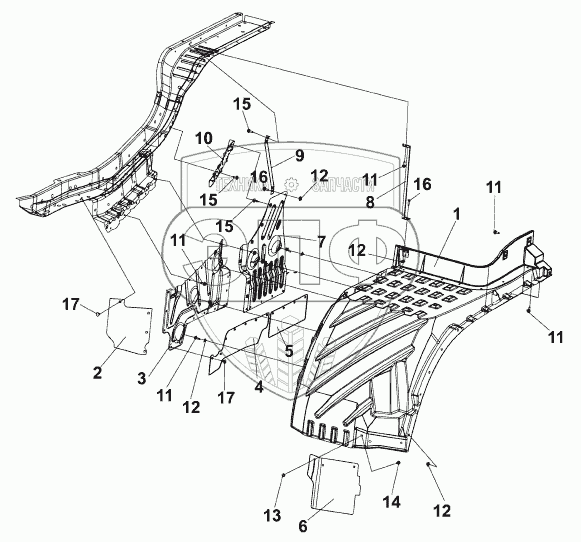 | 7 | 8403365-C0200 | Задний левый продольный брызговик в сборе | Нет на складе | |