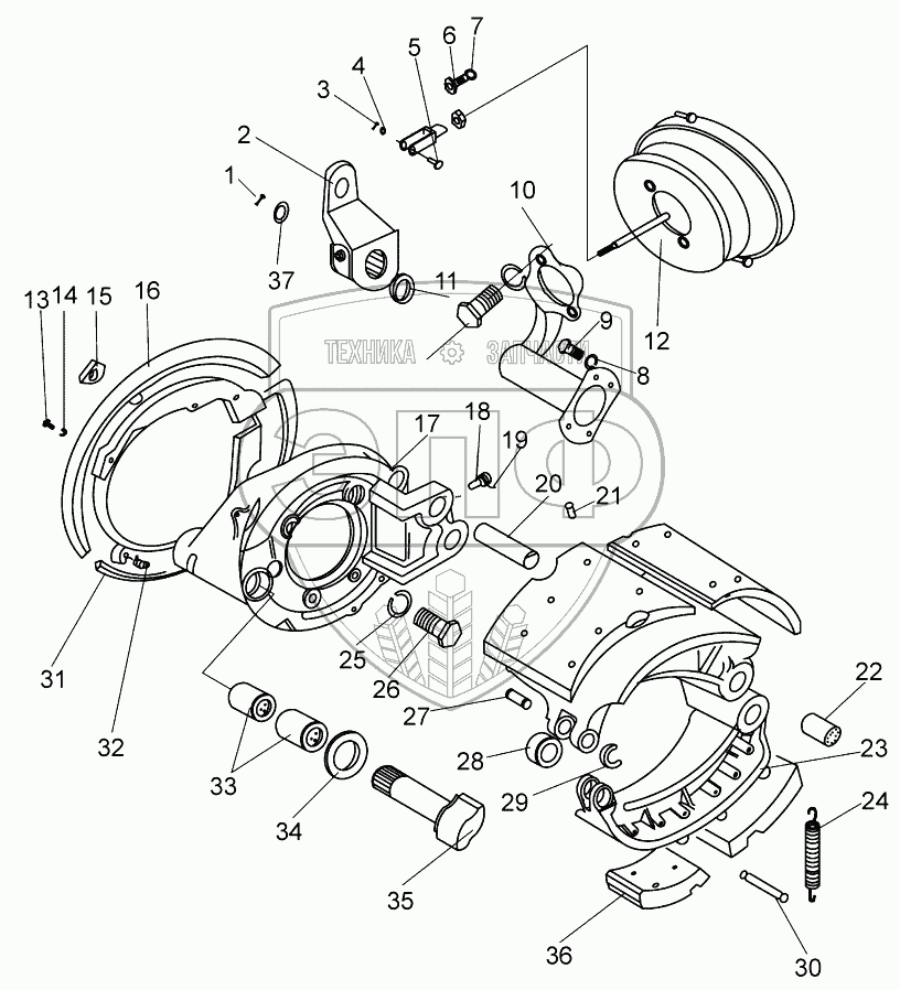Каталог запасных частей к технике: DongFeng EQ-1074. Тормоз передний