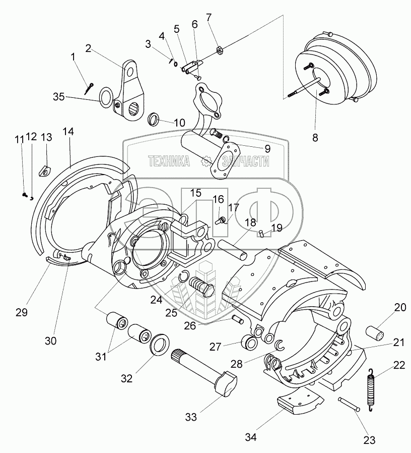 Каталог запасных частей к технике: DongFeng EQ-1074. Тормоз задний
