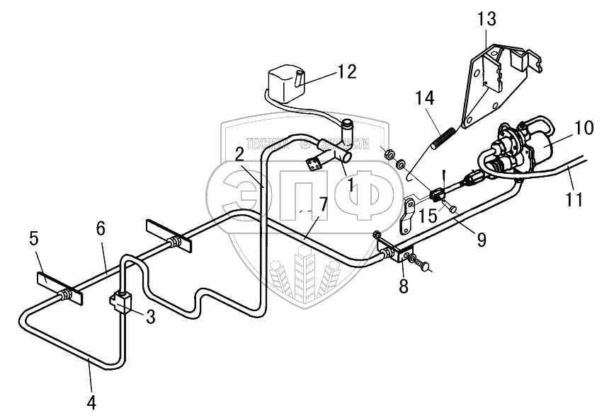 Каталог запасных частей к технике: DongFeng EQ-1074. Трубопроводы управления сцеплением