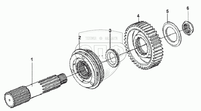 Каталог запасных частей к технике: DongFeng L3251A3 (вар.). Auxiliary Gearbox Main Shaft Assembly