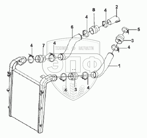 Каталог запасных частей к технике: DongFeng L3251A3 (вар.). Intercooler Pipeline Subassembly