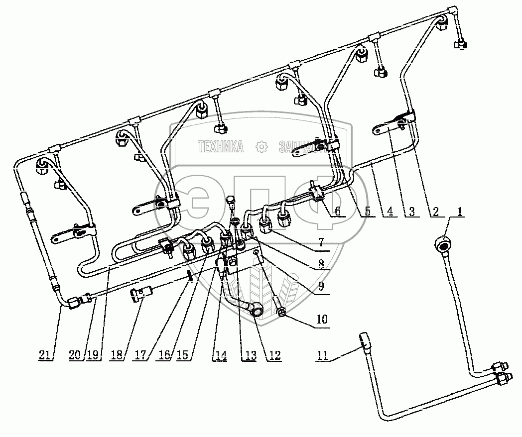 | 12 | М3000-1104700 | Топливопровод от подающего топливо насоса до распределителя топлива | Нет на складе | |