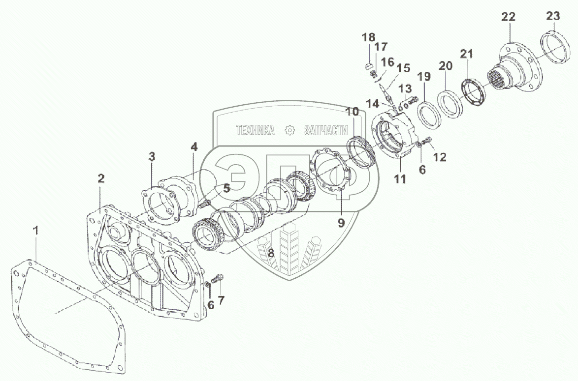 Каталог запасных частей к технике: FAW Altay-3310. Сборка задней крышки