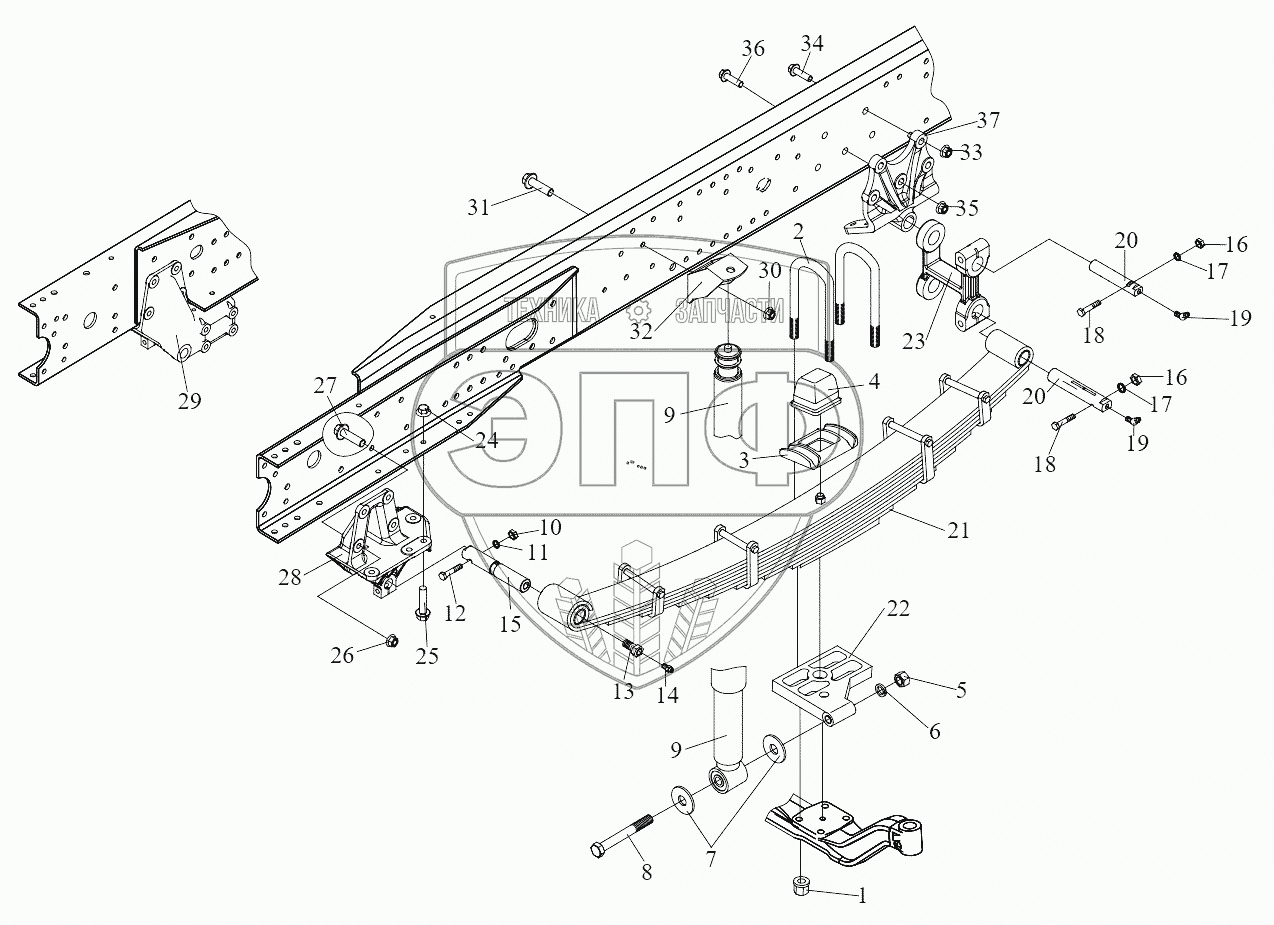 | 37 | 2902450-71B | Задний кронштейн передней рессоры | Нет на складе |