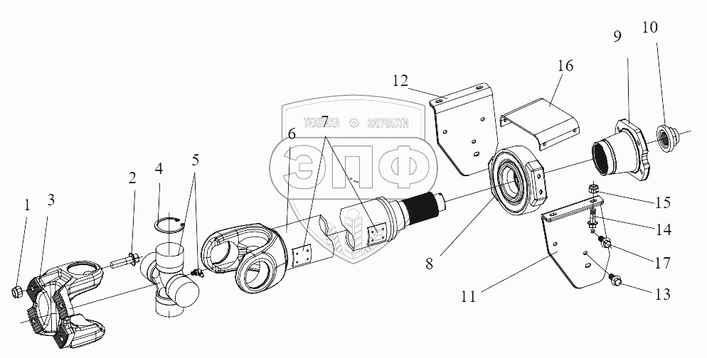 Каталог запасных частей к технике: FAW CA3311. Промежуточный приводной вал