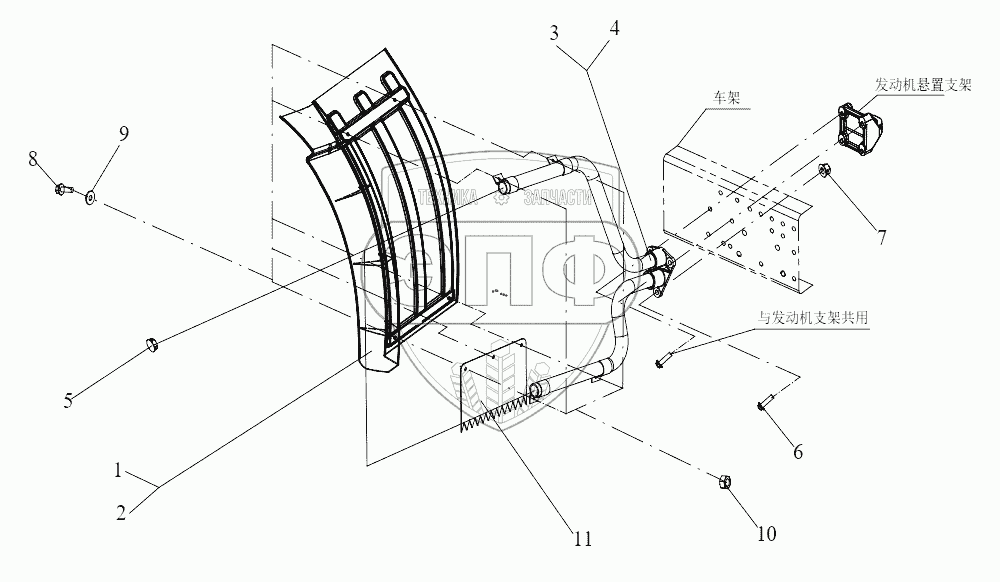 | 4 | 5103370-14B | Опорная труба право - заднего брызговика в сборе | Нет на складе | |