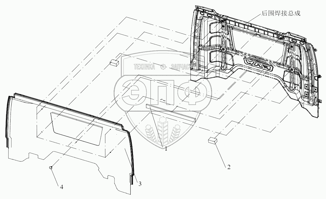 Каталог запасных частей к технике: FAW CA3311. Защитная пластина заднего борта