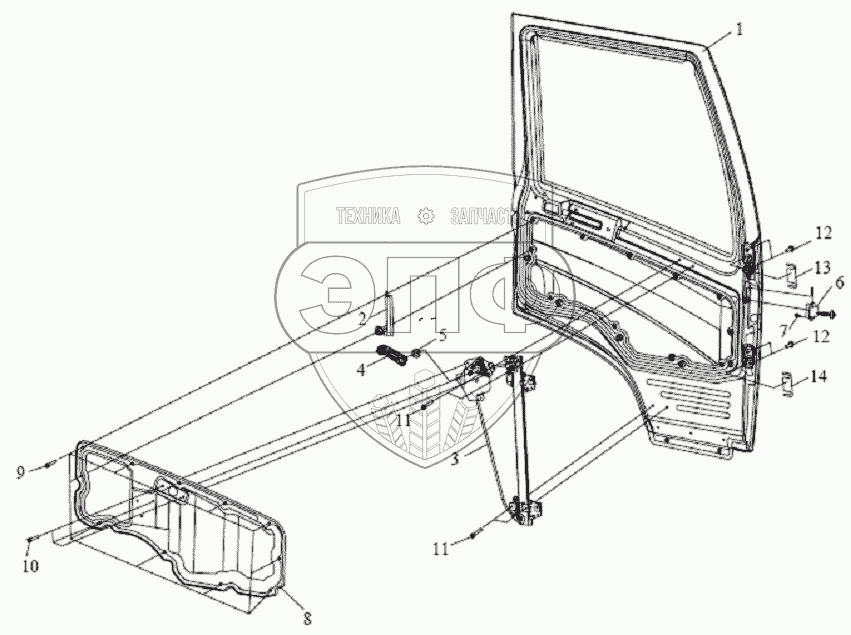 Каталог запасных частей к технике: FAW CA-1083. Дверь