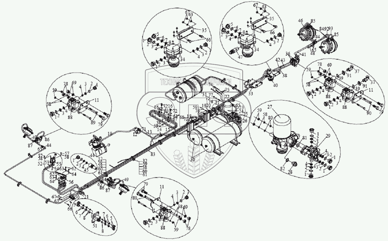Каталог запасных частей к технике: FAW CA-1083. Тормозная цепь
