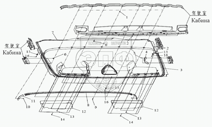 Каталог запасных частей к технике: FAW CA-1083. Внутренняя облицовка крыши