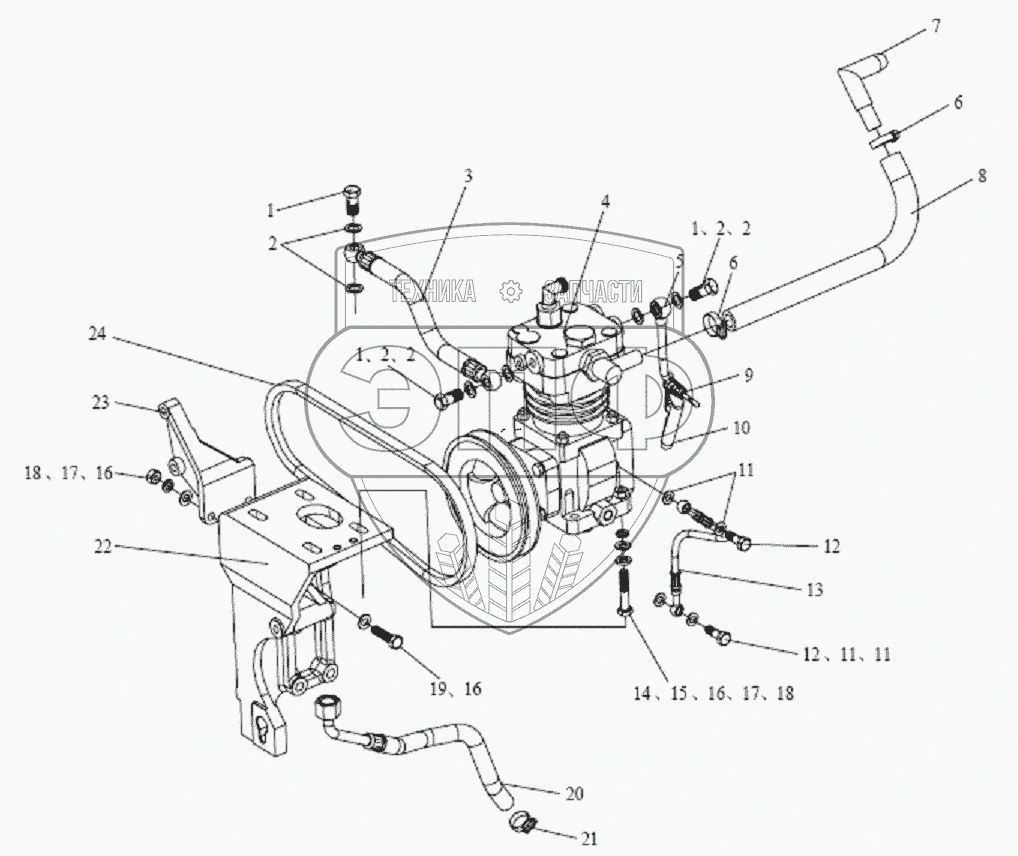 | 24 | 3509044-104-YX10 | Стойка насоса воздушного компрессора | Нет на складе |