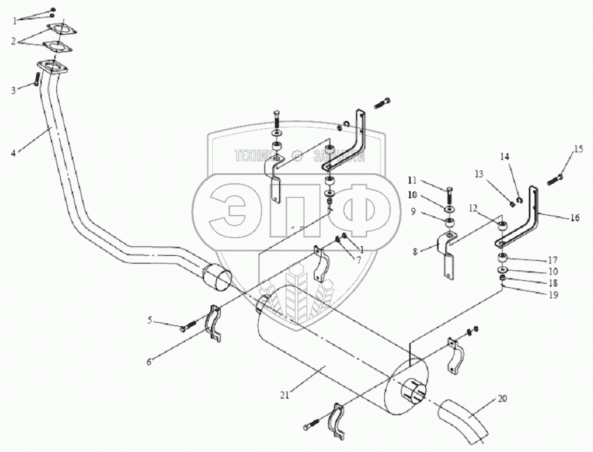 Каталог запасных частей к технике: FAW CA-1083. Выхлопная система