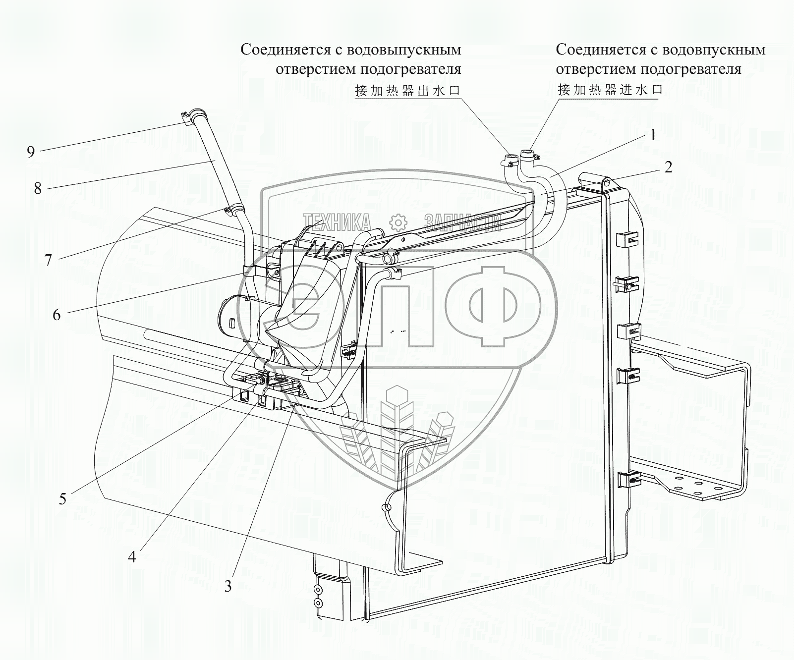 Каталог запасных частей к технике: FAW CA 3250 серии J6. Трубопроводы отопителя