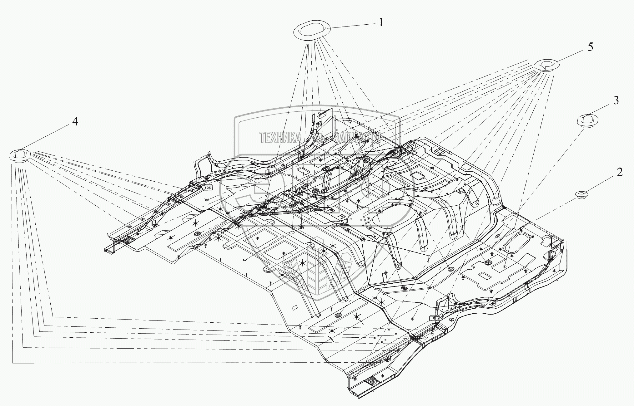 Каталог запасных частей к технике: FAW CA 3250 серии J6. Заглушки отверстий пола