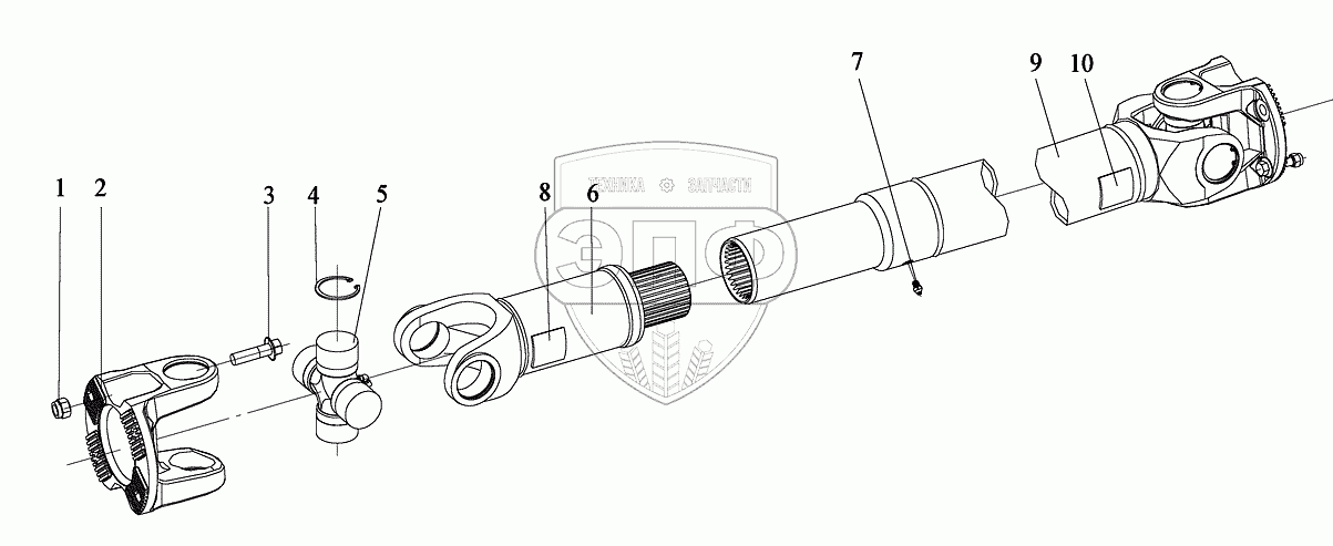Каталог запасных частей к технике: FAW CA-3252. Карданный вал среднего моста