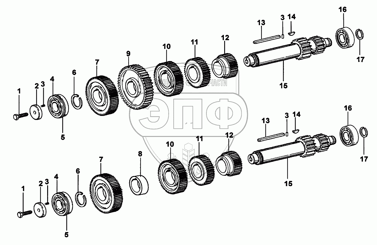 | 12 | 16753 | Шестерня первой передачи промежуточного вала | Нет на складе | |