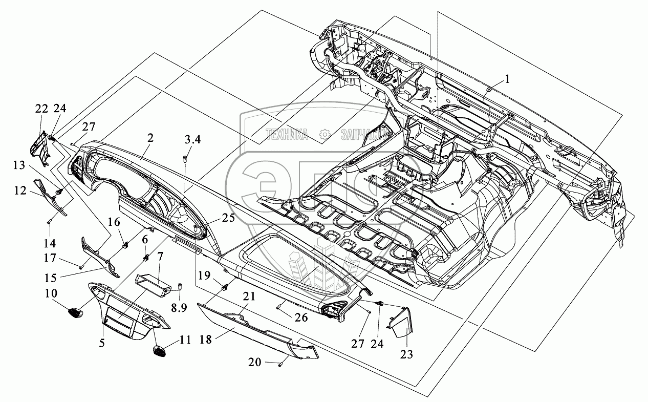Каталог запасных частей к технике: FAW CA-3252. Наружная облицовка панели приборов