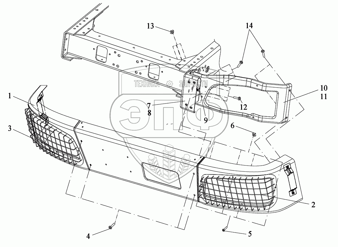 Каталог запасных частей к технике: FAW CA-3252. Передний бампер