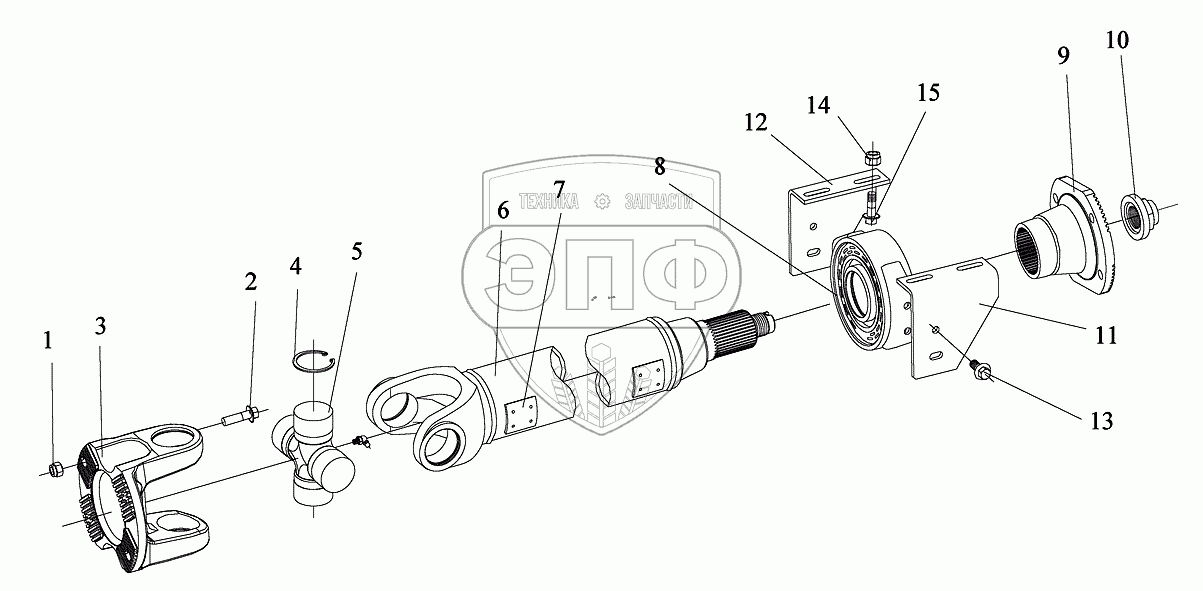 Каталог запасных частей к технике: FAW CA-3252. Промежуточный карданный вал среднего моста