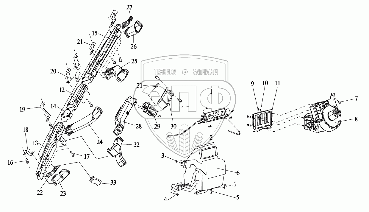 | 33 | 8101564-50 | Изогнутый воздуховод обдува ног | Нет на складе |