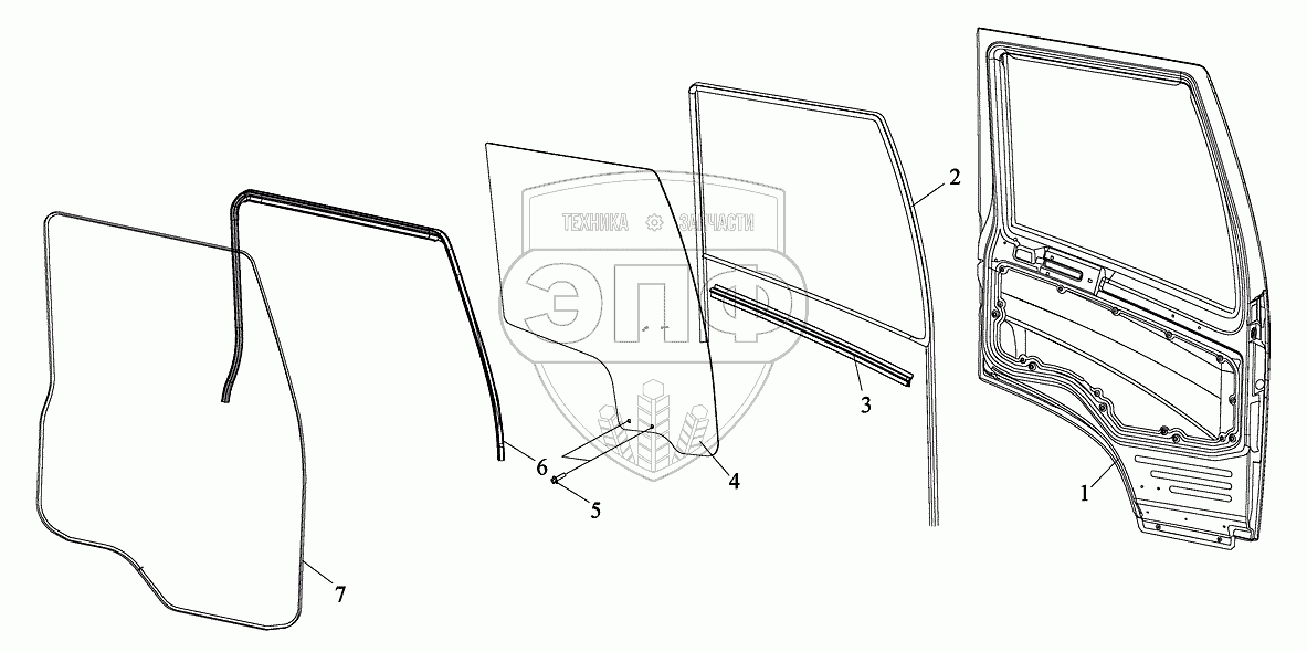 Каталог запасных частей к технике: FAW CA-3252. Стекло двери