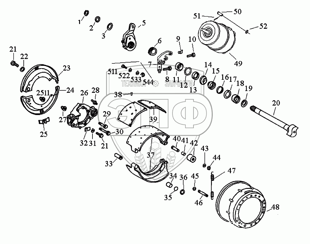 Каталог запасных частей к технике: FAW CA-3252. Тормоз заднего моста