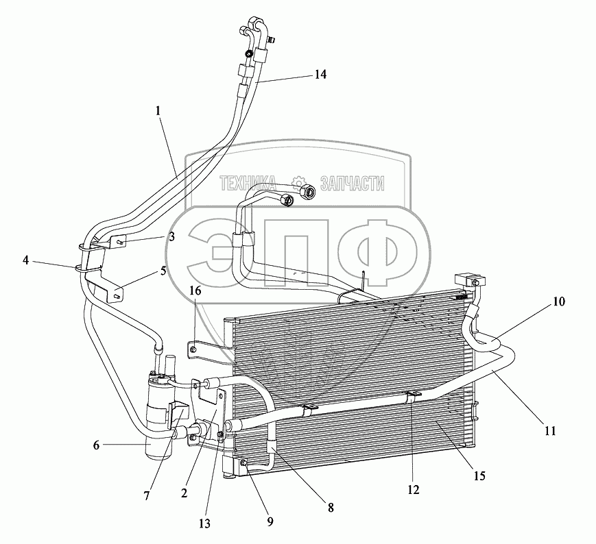 Каталог запасных частей к технике: FAW CA-3252. Трубопровод хладагента, конденсор, резервуар